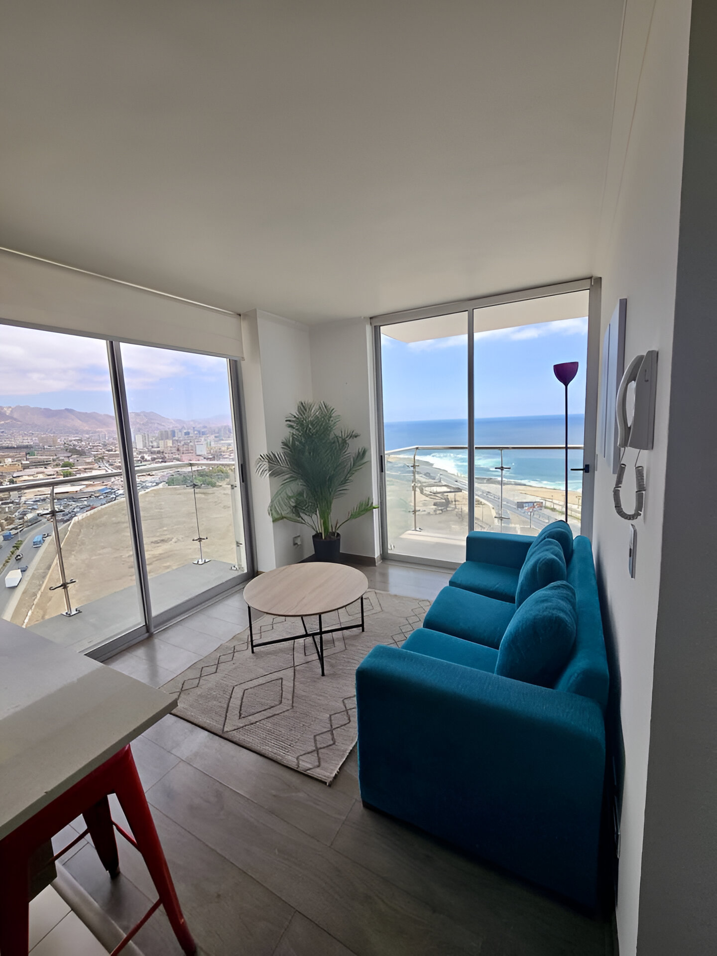 Departamento amoblado con vista al mar, cocina equipada y con estacionamiento gratuito dentro de las instalaciones. Excelente iluminación natural, Wifi, lavadora y secadora. Ubicado centralmente en la ciudad, con alta conectividad a 1 minuto de Mall Parque Arauco express, el cual tiene servicios como Farmacia, Supermercado Líder, Restaurantes, Gimnasio sportlife, Clinica Meds, Centro médico Clinyco, Chileexpress y más. Además de encontrarse a 3 minutos del Hospital Regional y Terminal de Buses.
