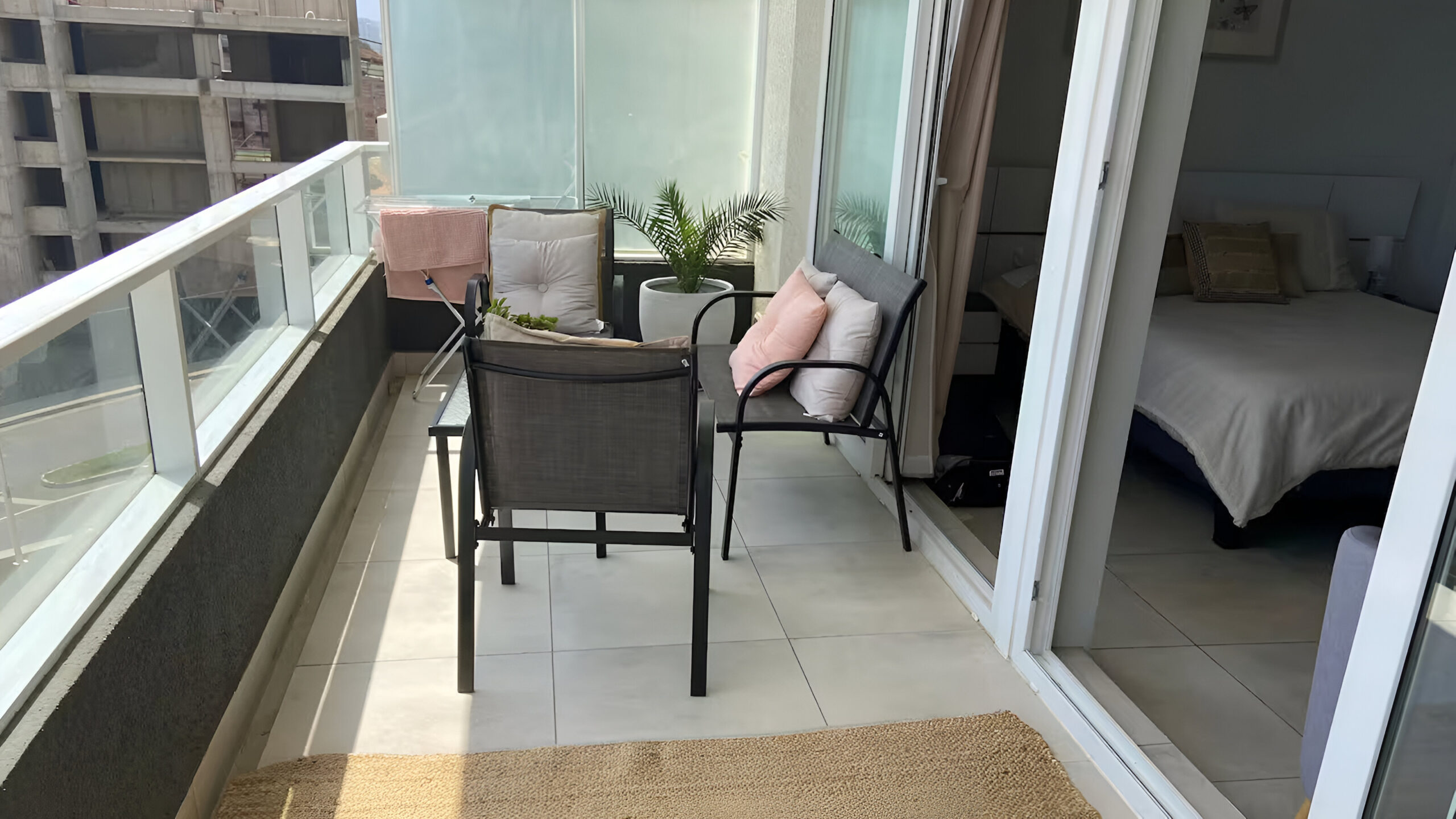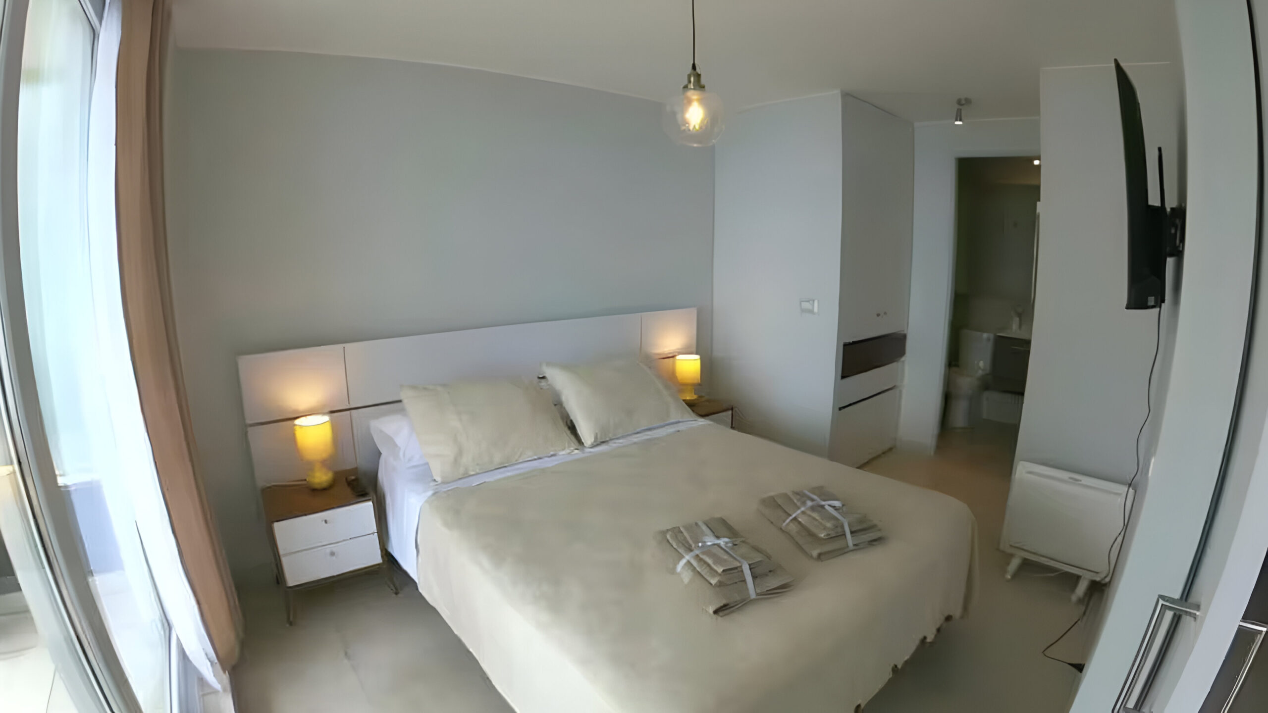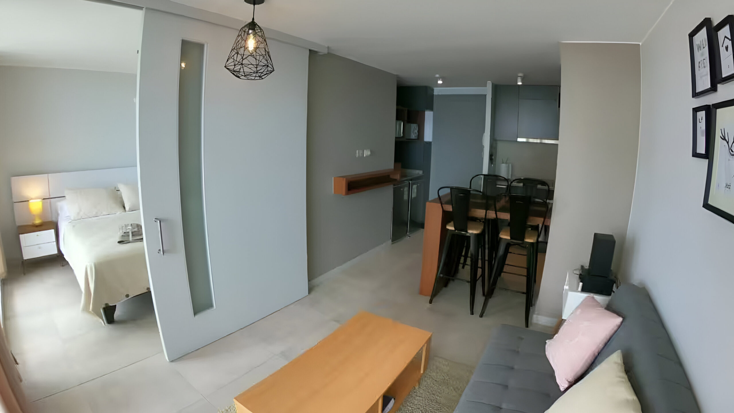 Acogedor Departamento para 4 personas con 2 piezas de igual tamaño, cada una con 1 cama de dos plazas, una TV de 50» y un baño privado. Cocina full equipada, incluye lavadora, refrigerador, microondas y horno.